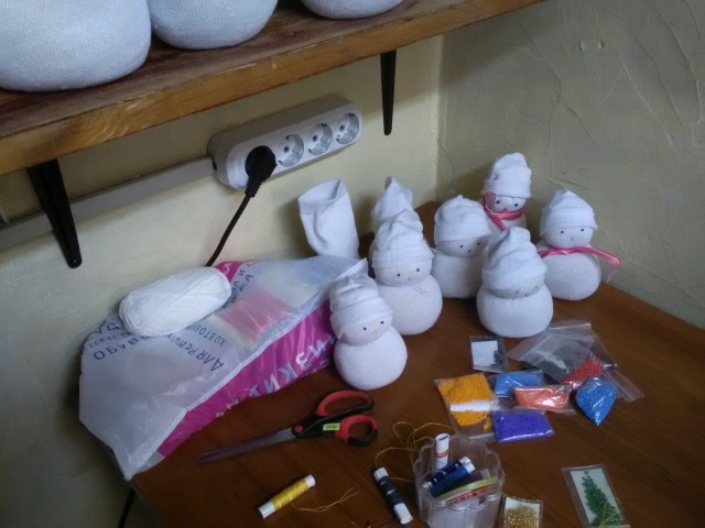 На работе в рамках подготовки к Новому году делали снеговиков. К сожалению не сфотографировала все этапы, только конечный результат ((