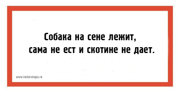 - Собака на сене лежит, сама не ест и скотине не дает.