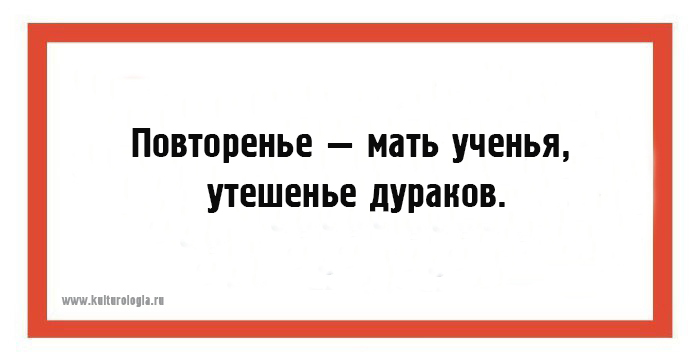 - Повторенье – мать ученья, утешенье дураков.