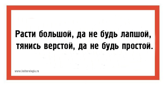 - Расти большой, да не будь лапшой, тянись верстой, да не будь простой.