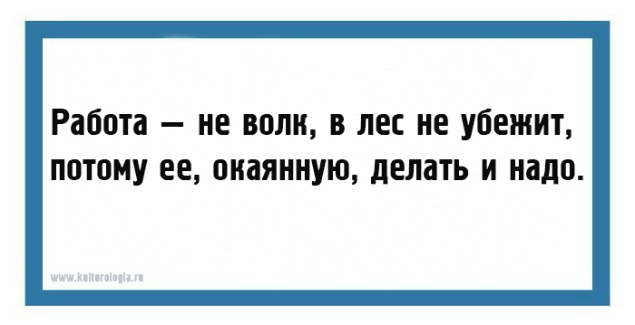 - Работа — не волк, в лес не убежит, потому ее, окаянную, делать и надо.
