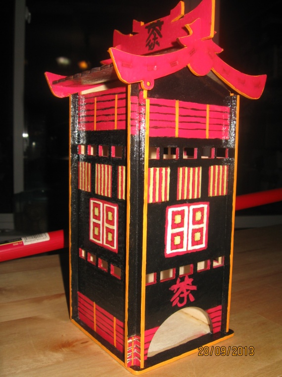 чайный дом в подарок подруге-обожающей все именно такое-японско-китайско-корейское… на крыше иероглиф«чай»(срисовывала, как могла)… декупажная карта и роспись-вид сзади и сбоку соответственно...