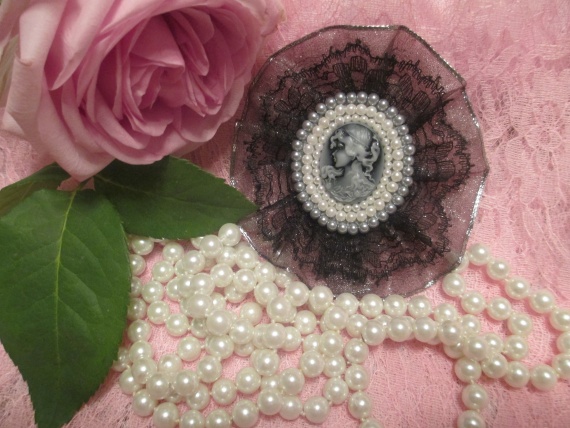 Камея очень красивая, но мне кажется, если заменить черное кружево белым шитьем, или кремовым, получится белее винтажно:)). Я не специалист по украшениям — это мое видение, а вообще — очень красиво.