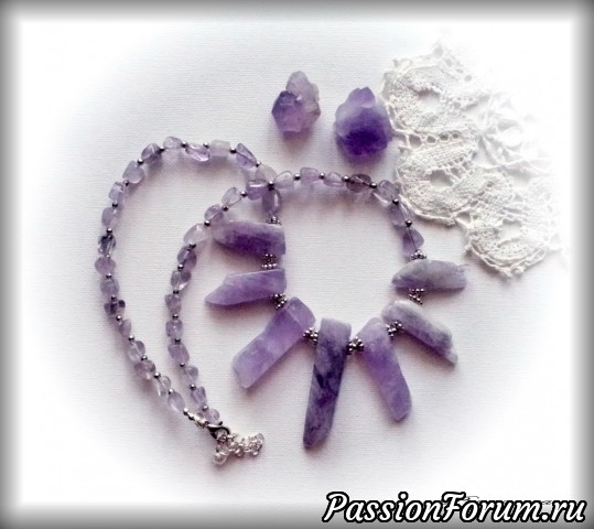 Ожерелье выполнено из природного аметиста цвета лаванды.