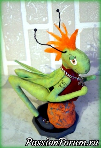 Все шьют петушков, курочек, снегурочек, снеговичков)))..., а у нас на свет появился Кузнечик. Да не просто кузнечик, а кузнечик-панк.