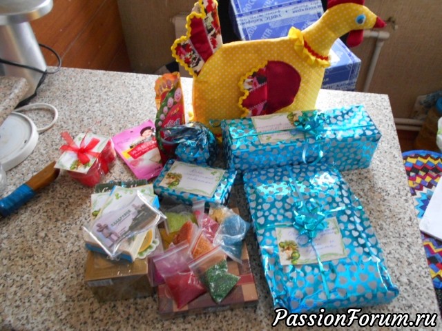 Девчата, я получила подарок от своей феи - Алевтины Черной из Хабаровска. Подарок моей пришел - как пирог из печи - 6 января- в день перед Рождеством и в день 33 летия нашей совместной жизни с моим Петровичем. Алечка, огромное тебе спасибо за такой офигенный подарок, где было внимание оказано всем и каждому в отдельности!!!
