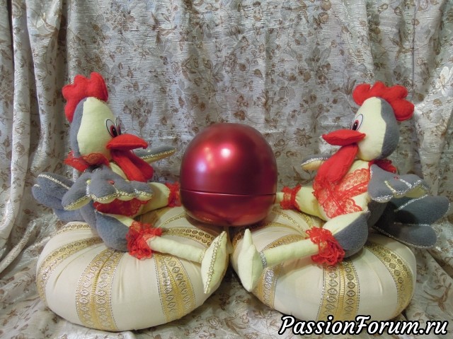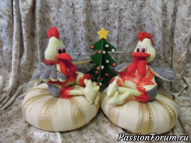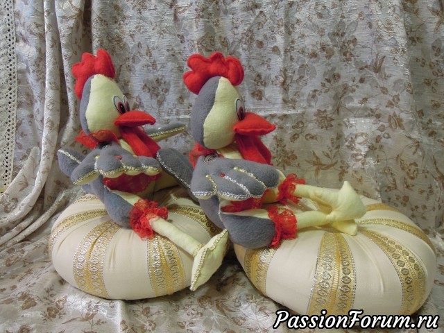 И хочу сказать огромное спасибо всем кто показывает свои работы и объясняет как их делать. Я свои игрушки шью, учась у вас. Своей фантазии и знаний пока не хватает, правда когда делаешь по образцу свое все равно "своим" получается. Этих петушков я тоже здесь подглядела. Еще раз спасибо всем кто делится своим мастерством