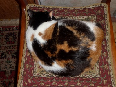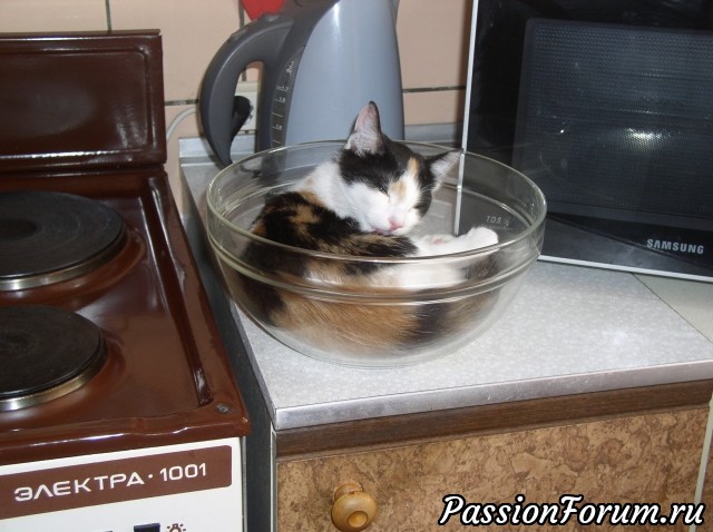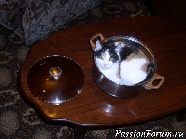 У нас седьмой год живёт кошка Китти - бандитка, каких мало. Говорят, что трёхцветки все такие. Конечно, теперь она немного остепенилась - все фотографии из её первых двух лет жизни. Она очень умная - выполняет команды: сидеть, дай левую лапку, дай правую лапку, лежать, дай ножку(заднюю), служить. Остальное вы увидите из фотографий.