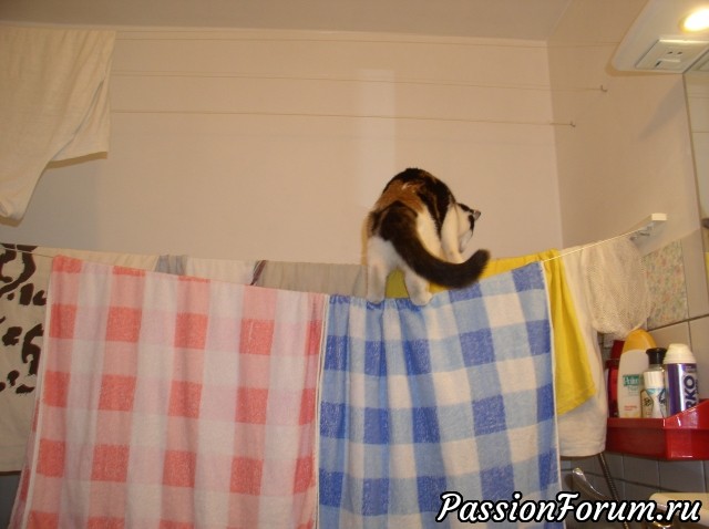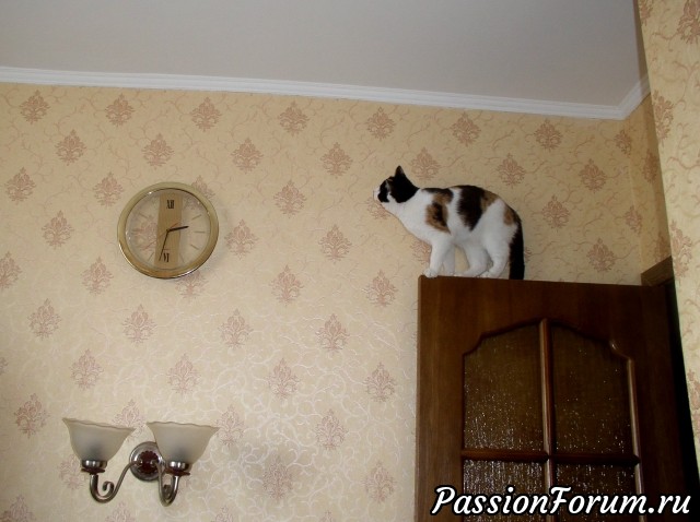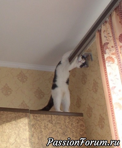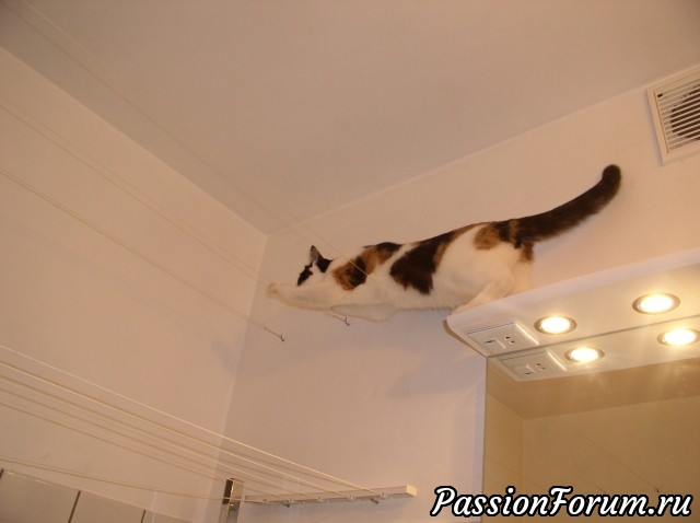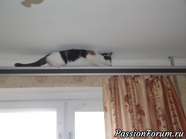 Приклеили на антресоль потолочные панели, на плохом фото начало ее работы — вся в кусочках этих панелей. Обгрызла почти все.