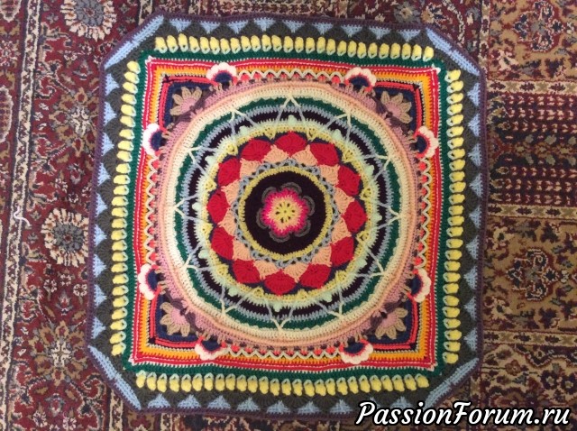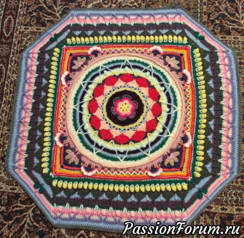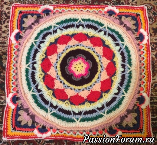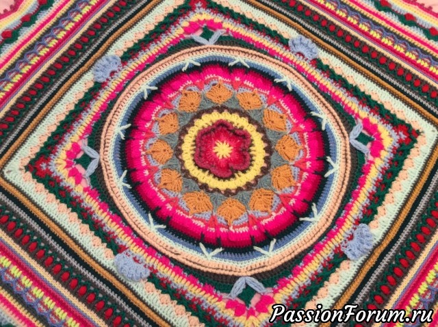 А в конце прошедшего года в инете нашла мастер-класс по вязанию пледа Мандала от Sophie's Universe на сайте Club-MK и снова схватилась за крючок... Пока он у меня в работе, но я не хочу вязать его огромным и поэтому планирую скоро закончить, а пока - посмотрите, что получается... Может, кому-нибудь пригодится?...