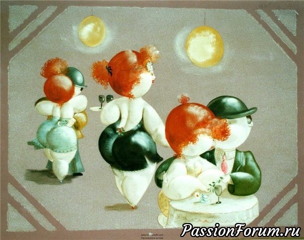 Художник любит пышные формы, и в своих картинках рисует мир таким, каким бы он хотел его видеть. Блогеры наделили образы художника эпитетами "пышки", "пампушки", "прогестерон-насыщенные" и отметили, что шар — любимая геометрическая фигура мастера !!!