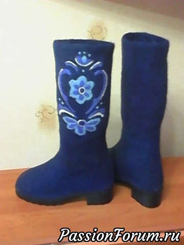 девочки вот еще одни сапожки ,шаблон как у первых один в один, но у этих раскладка диагональная и сапоги получились выше , голенище пластичней, ну и рисунок мне кажется благородней смотрится чем тот, нос я терла как подсказали.Спасибо смотрите что получилось и жду замечаний и подсказок.Заранее спасибо