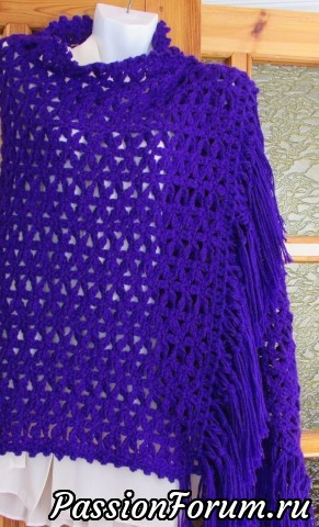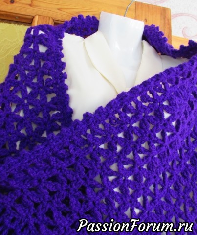 Палантин крючком Фиолет – теплый, ажурный, большой, подарочный, дополнит и украсит Ваш гардероб.