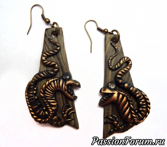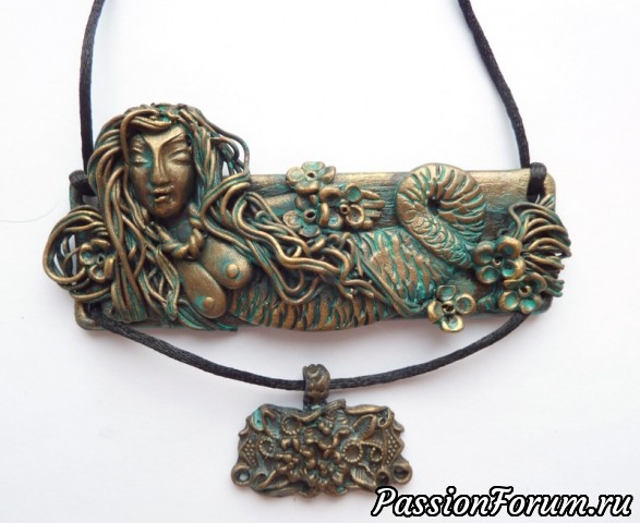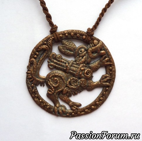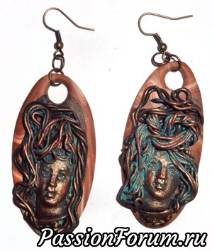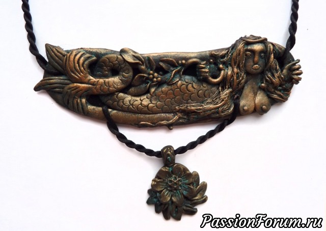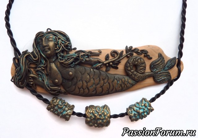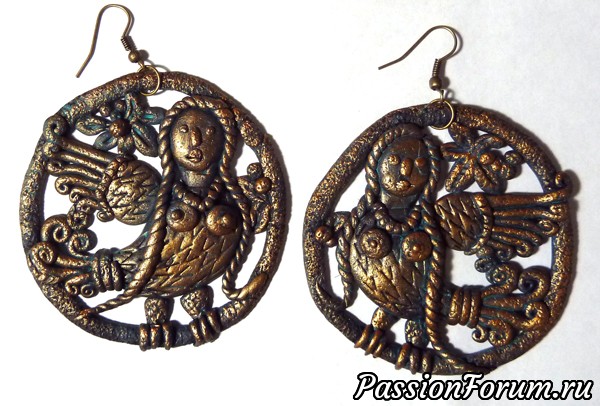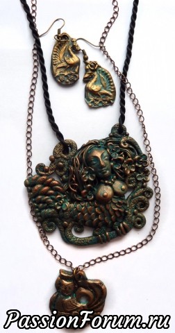 Эта серия украшений мз полимерной глины посвящена фольклорной и сказочной теме. Сделаны с имитацией металла - бронзы, меди, а также дерева.