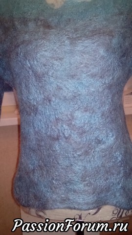 А поверх первого слоя шерсти была выложена шерсть меринос бежево-коричневого цвета паркеткой,нарочито крупными "мазками" - и получился мягкий двухсторонний свитер-джемпер.