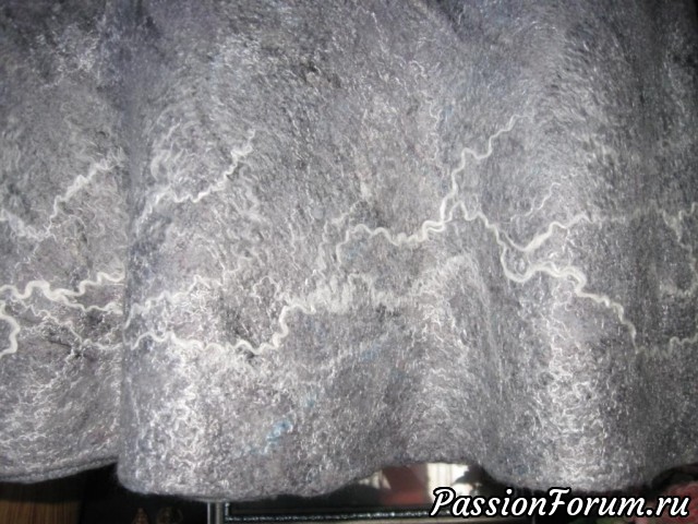 Добрый вечер, дорогие рукодельницы. А я сваляла себе юбочку. Обычная четырёхклинка, но валяла её на шаблоне-книжке. Сразу на солнце или даже полусолнце замахиваться не стала. Эксперимент всё-таки. Всего 6 слоёв. Первые 2 вискоза, 3 и 4 - шерсть, 5 и 6 вискоза намешанная из разных оттенков серого, голубого и даже розового. На шаблоне-книжке валять понравилось, места занимает гораздо меньше, а рёбер в результате не видно. Шерсти ушло совсем мало, около 50 гр, и чуть больше 100 гр. вискозы.