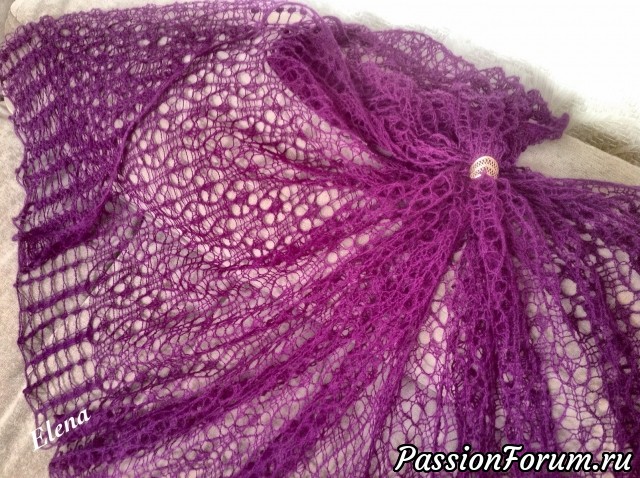 Красивая шаль! Правильно, что связали из тонкой нитки, смотрится воздушно. Я палантин Руно один связала из тонкого мохера, а второй из Лидии п/ш в две нитки. Конечно из мохера совершенно другой вид. Елена, а как ниточка, мягкая? Мне Кауни очень нравится по цвету, но колючая.
