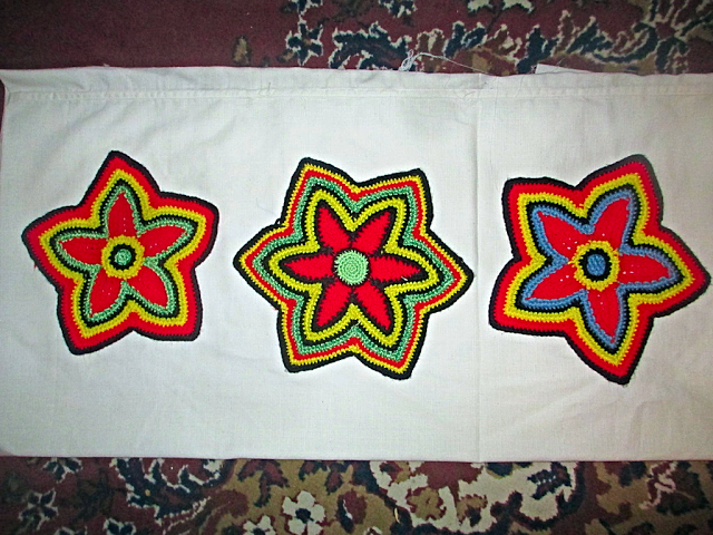 В большинстве случаев это были цветы-аппликации, нашитые сверху на вязаное полотно. Пару раз получались цветки из узора РЕЗИНКА и драппированных узоров.(Тут уже цветок как самостоятельный мотив, а не аппликация).