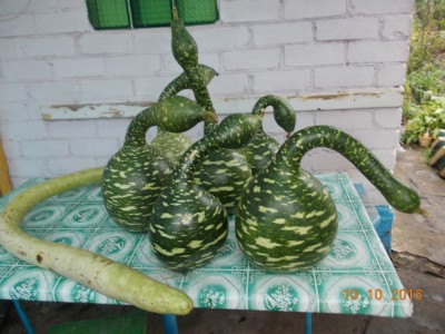 Здорово как! Золотые ручки.А у меня руки до декупажа или разрисовки все не дойдут.Но несколько советов девочкам по выращиванию в средней полосе могу дать.Сажала рассадой, высаживала на солнечную сторону, обязательно нужна опора.Тогда тыковки получаются с ровной шеей, как раз для ваз.Опылять нужно самой.Поняла, что дожидаться когда высохнут сильно не надо, нужно отрезать верхушку у шеи(муж отрезал болгаркой), режется очень плохо.Верхний слой побыстрее соскоблить ножом, тогда получится однотонная поверхность.К сожалению высушенные показать не могу, остались в селе где мы проводим лето.Семена подсохли и вытряхнулись.А вот стенки очистить не просто.Чем только не пробовала, но помогли мышки.Зимой дом стоит пустой, мышки хозяйничают, вот и дорвались до моих тыковок.Почистили стенки великолепно.Мне оставалось только вытряхнуть всю шелуху.Семена успели вызреть, раздала всем соседям.