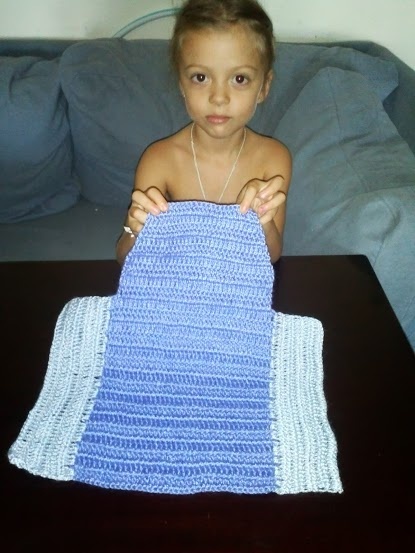 Провязываем 5 рядов столбиков с накидом, обрываем нитку