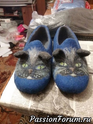 Могу порекомендовать найти мк по валянию на таком шаблоне мастера Полубояринова Ирина, у неё в разделе мк очень подробно и досконально описан процесс работы и над шаблоном и самими тапочками. Единственное что я изменила, то это вес шерсти я взяла на 20 гр больше, чем заявлено у мастера.