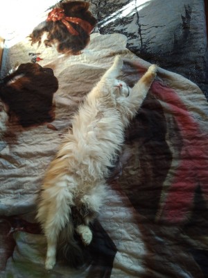 Любимая поза моего хвостатика.Еще и похрапывает.