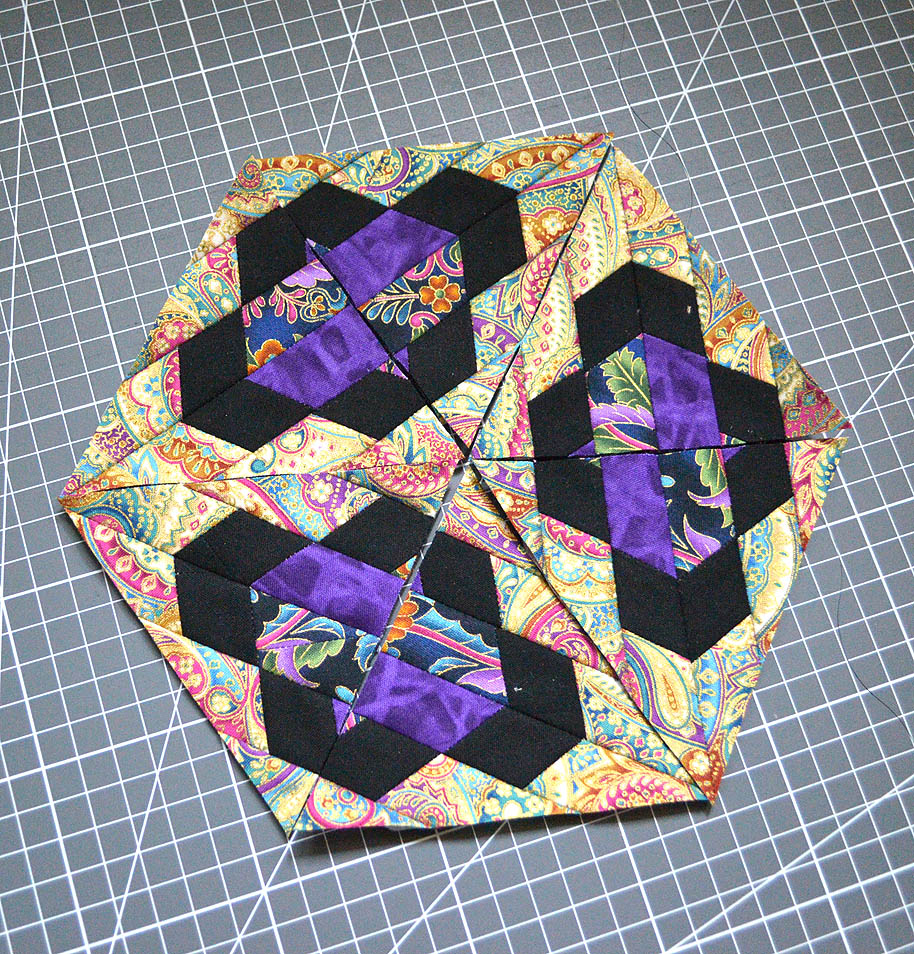Испытания в целом, считаю, прошли успешно. Пришлось перенастроить машинку на другой припуск: привычный в 1/4" не подходит. И мне не хватило разметки оси симметрии на шаблонах - нарисовала сама маркером.