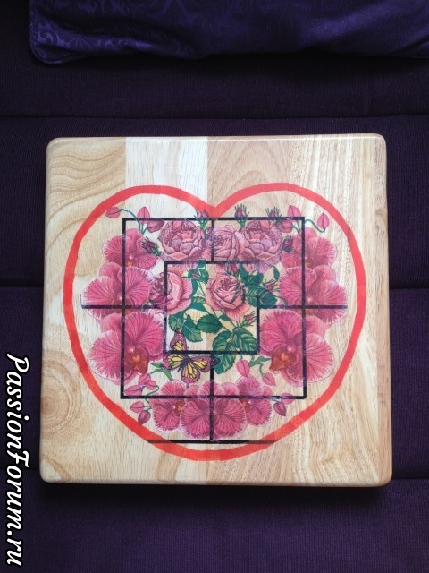 Я вроде бы " завязала " с досочками, но лежат шахматы для подарка мужу на день рождения. Руки так сами и потянулись к доске.. .Не утерпела, задекупажила и подарила на день Св. Валентина.