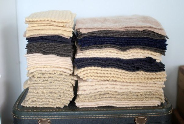 Практически лоскутное трикотажное одеяло, плед, накидушки и т. д. Спасибо, беру на заметку! Что бы еще из нераспускающихся свитеров, кофт сделать? И чтобы работы поменьше… Если мед, так ложкой!