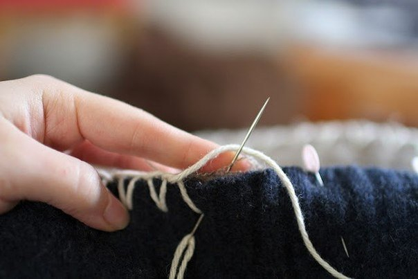 Я еще не делала, но думаю по желанию. Можно с 2-х сторон «свитера, если много, а можно ткань какую-либо, можно соединить мотивы крючком, тогда прокладки не надо — олегченный вариант.