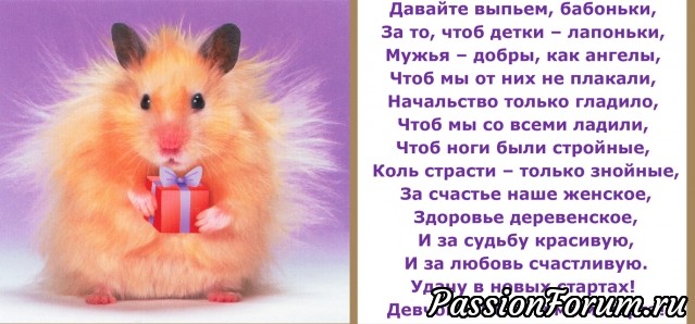 Милые наши женщины!С праздником Вас!В этот день-самых красивых цветов! Самых добрых пожеланий! Чтобы у ваших мужей глаза светились от любви,глядя на вас! Дети,чтобы только радовали! А коллеги и начальство уважали!Счастья вам,милые мои!