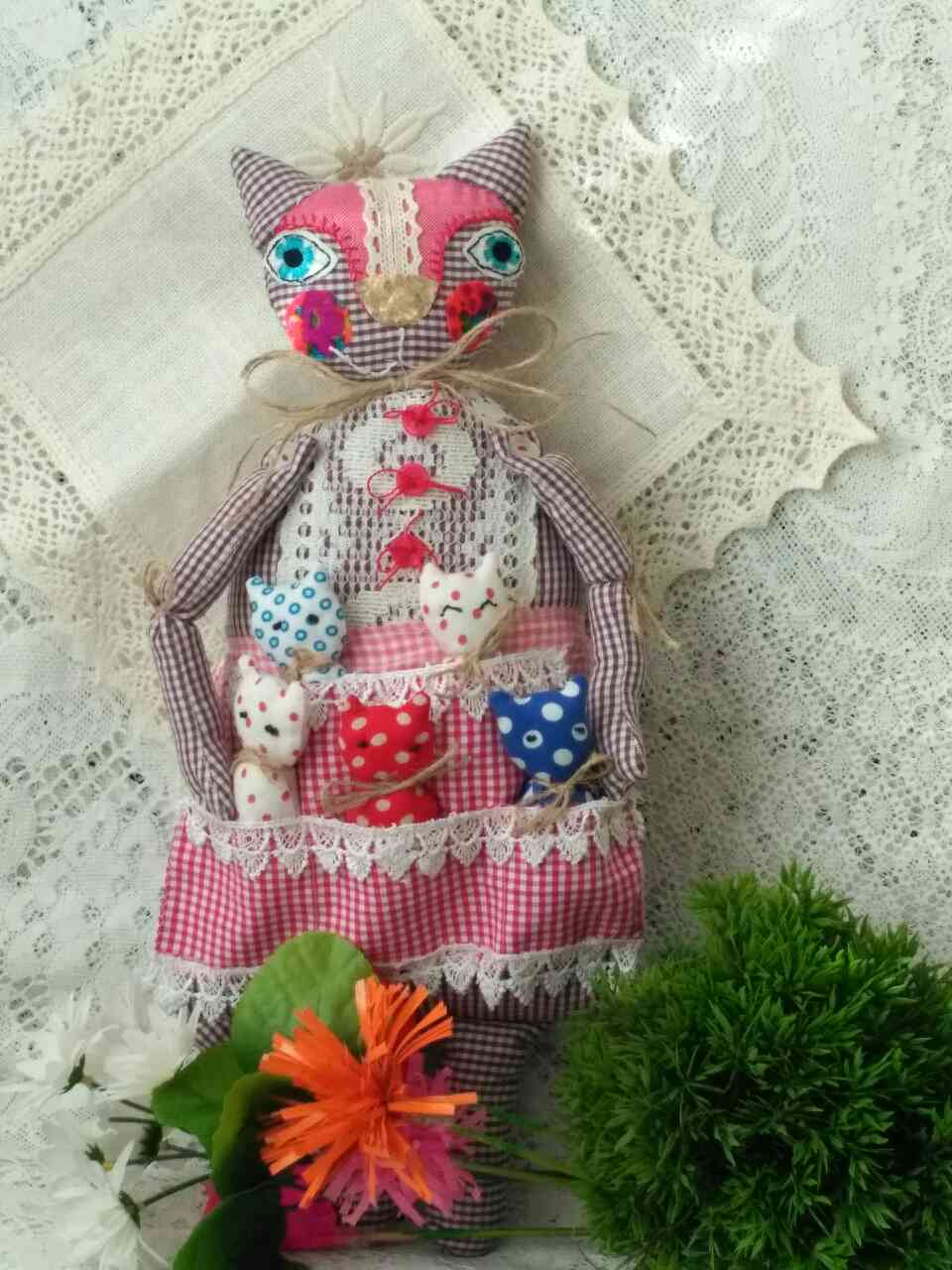 Добрый день ,дорогие рукодельницы!Вот такая игровая кошечка у меня родилась,внучки довольны!