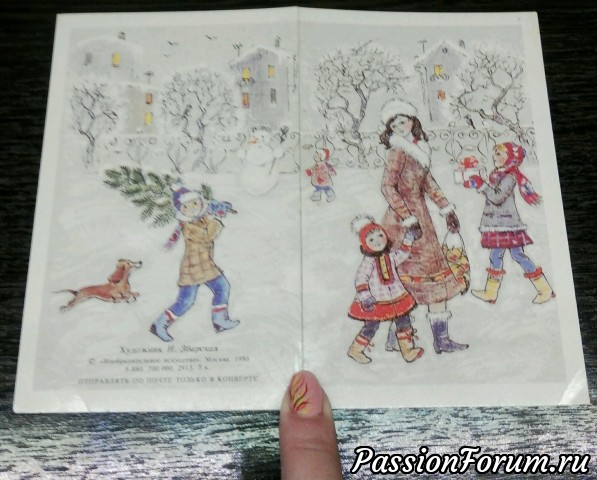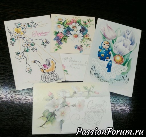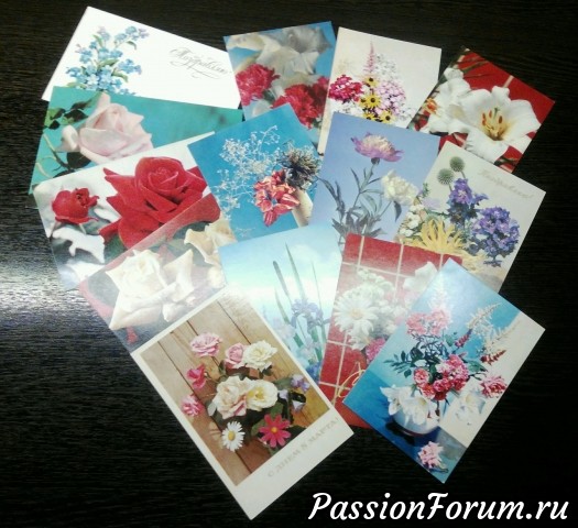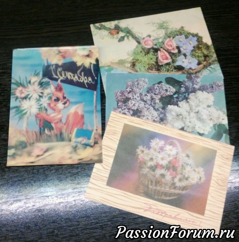К сожалению погода пасмурная и пришлось использовать дополнительное освещение, а оно дало блик на глянце открыток.