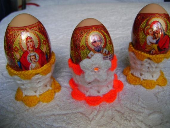 По данной схеме вяжем с 3-го ряда — привязываем к первой детали-таким образом получается стаканчик на подставке.Ниже в углу по схеме вяжем цветочек (я вместо 3ст.с двумя накидами вязала 2) и пришиваем на каёмку первой детали.