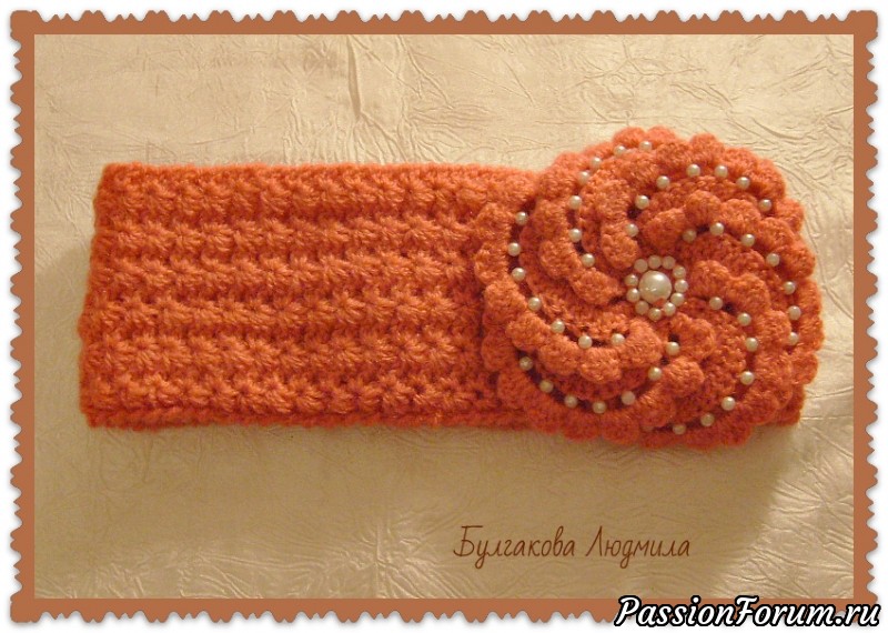 У меня повязка двойная .Вторую часть повязки я вязала спицами