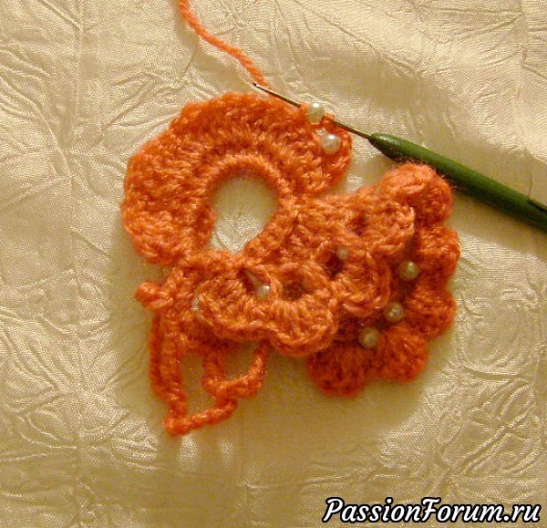 Переходим на верх лепестка.2ССН в одно основание,1ссн,2 ССН в одно основание ,1ССН,2 ССН в одно основание,3ССН ,1 ПССН,1сбн,1СС.