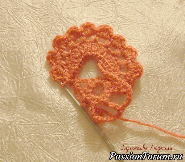 вяжем СС до следующего лепестка(цепочки из ВП)Вязать свободно.