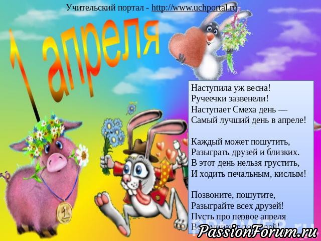 – Ага, – кивнул Витя. – Я пошутил. Меня по русскому и не спрашивали! С первым апреля!