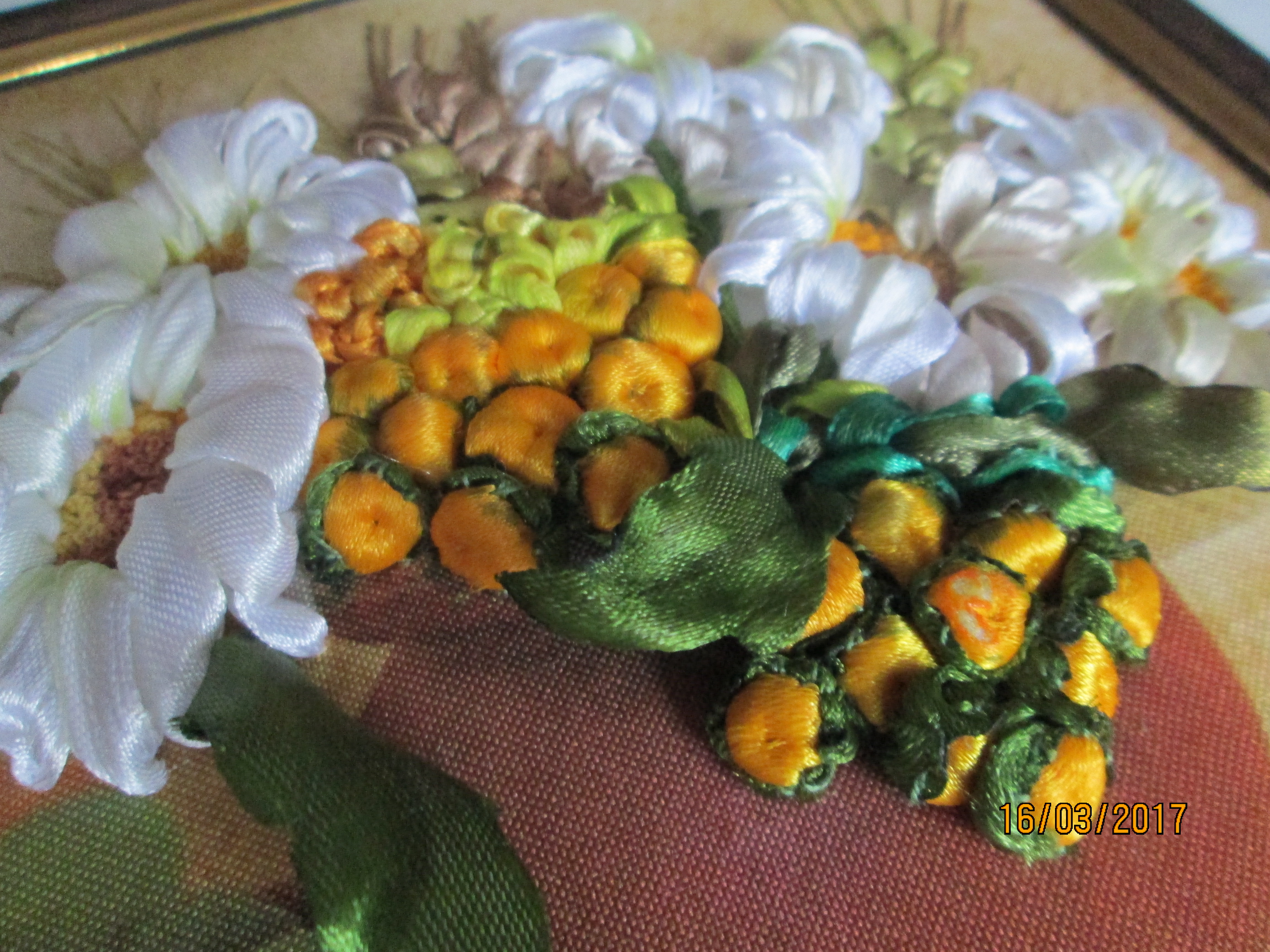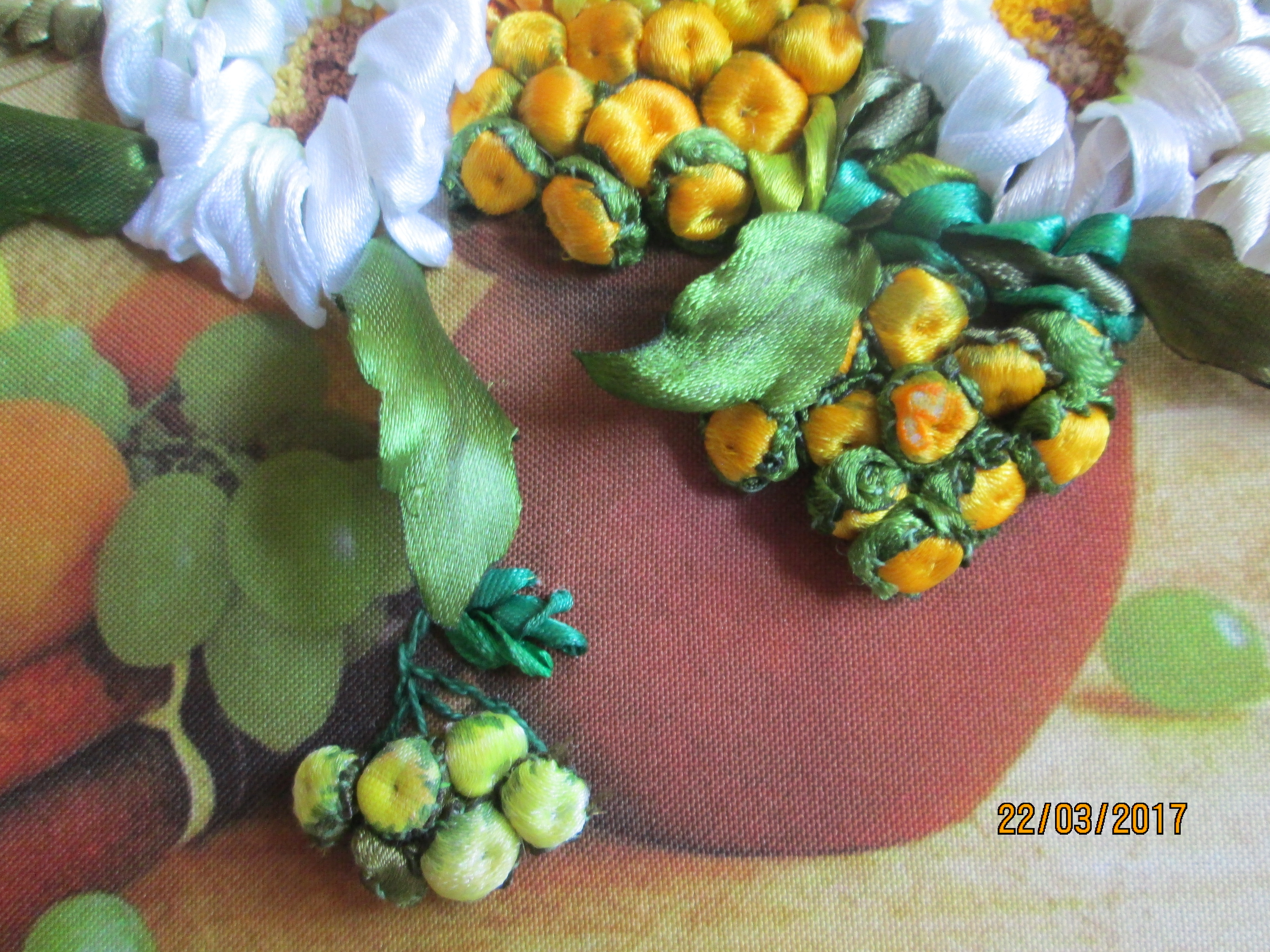 Лена, прекрасная пижма! Использовали объемную вышивку… все классно! А не хотите еще и виноград вышить, работа трудоемкая, но будет очень здорово. Если решитесь, я расскажу как