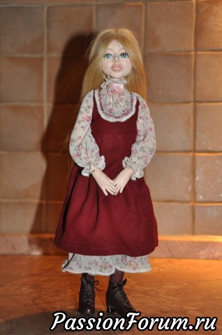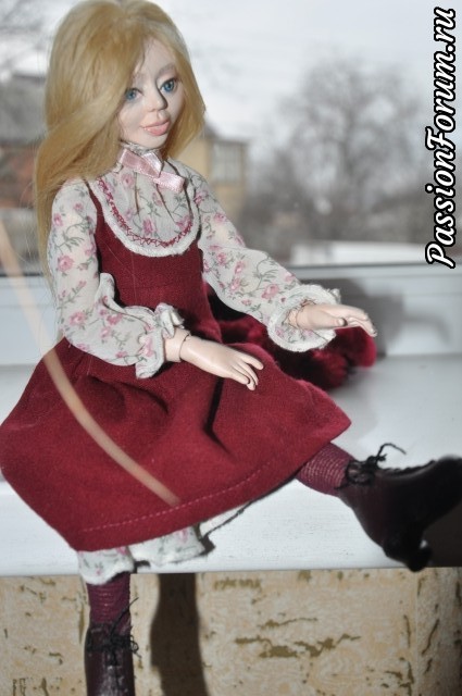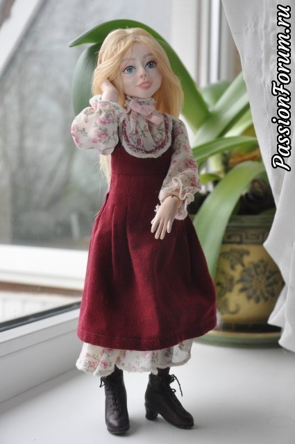 А это скромняшка Гердочка, она совсем малышка, не помню, см 25-27, не выше. Размер ее сапожек 28мм, и тоже сделаны по всем правилам сапожного дела!