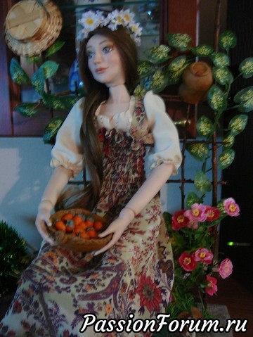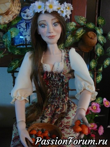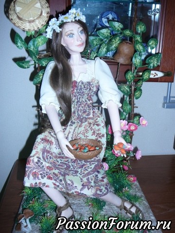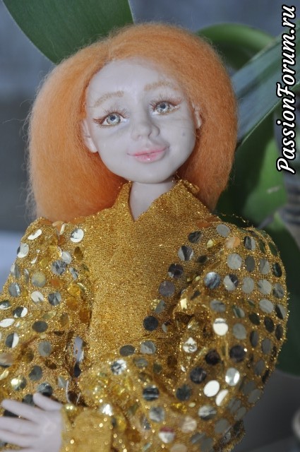Волосы у нее вживленные в пластик, по одному волоску вставляла, 3 недели заняло "оволосение" )) Кстати, волосы - мои собственные))