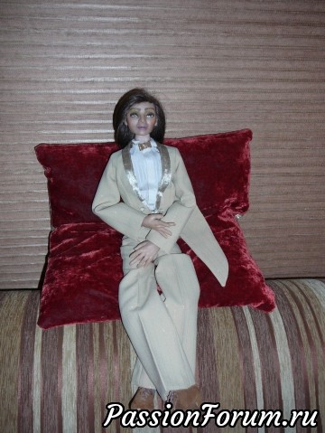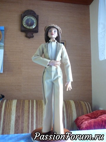 Вот мы при параде, едем на выставку))) Он тоже стоять умеет, но на выставку надо с подставками, а то толкнут тумбу и полетит танцор в пропасть!