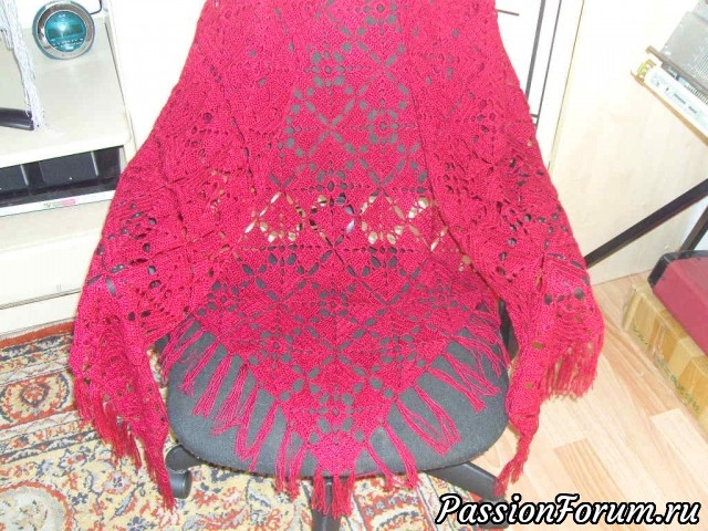 Недорого продам большую темно-вишневую шаль. Мотивы, связанные крючком, образуют очень красивый, неповторимый рисунок шали. Размер 2.25*1.10, акрил 100%, 850 р. Вышлю в любой регион Почтой России. Предоплата на карту Сбербанка, после отправки вышлю трек для отслеживания. Для связи можно использовать этот сайт (через л\сообщения), а также эл.почту ikar4764@mail.ru
