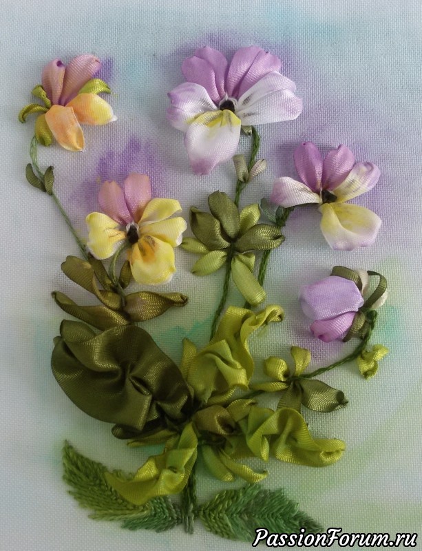 Мастер класс по вышивке миниатюрной трехцветной фиалки ч.1