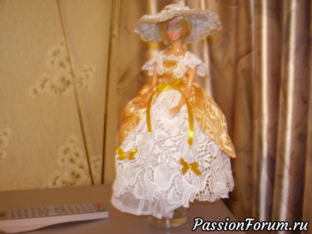 Прошу прощения за плохое качество картинки. Это моя первая, ее лет 10 назад одевала. Я с неё только одежду дарила, так как эту куклу подарили, когда мне самой лет 30 с хвостиком было - тогда это большая редкость была, тем более привозная. Так что, она уже дама бальзаковского возраста.