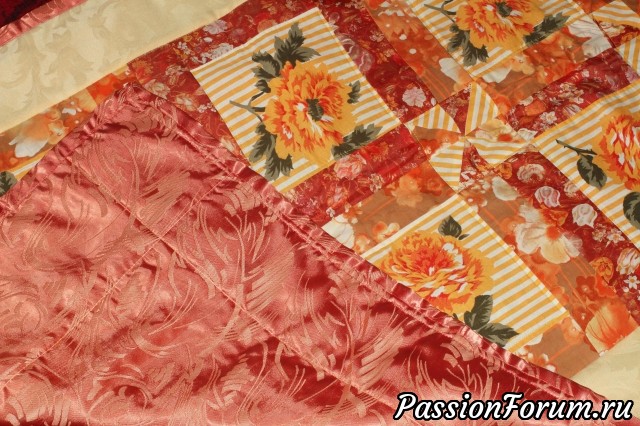 Наконец сфотографировали одеялко, которое я сшила в технике лоскутного шитья. Оно первое, не судите строго. Появилась идея обшить как-то старое шерстяное одеяло и вот что получилось.