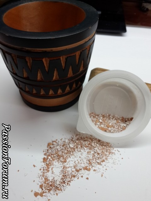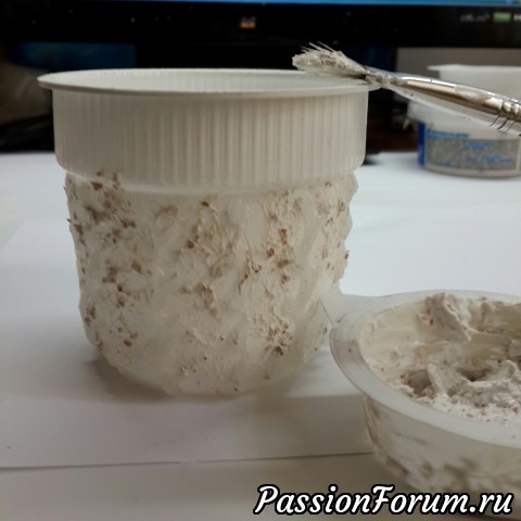 3.Пока клей сохнет ( минут 10 ) готовлю смесь шпаклевки и толченной яичной скорлупы.В данном случае скорлупа нужна чтобы придать больший рельеф.Вместо скорлупы можно использовать песок, либо брать грубую текстурную пасту.