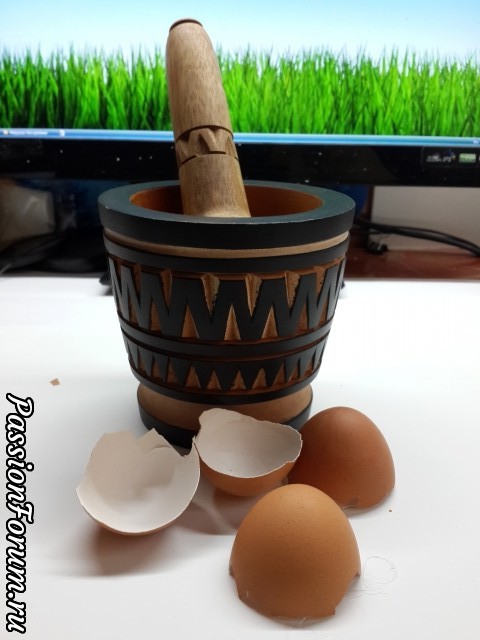 Скорлупу от яиц перемалываю в ступке до очень мелкого состояния