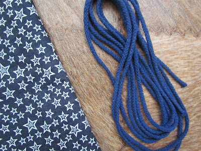 Для отделки мужского рюкзака приобрела 0,20 м джинсовой ткани и 4 м шнура синего цвета.