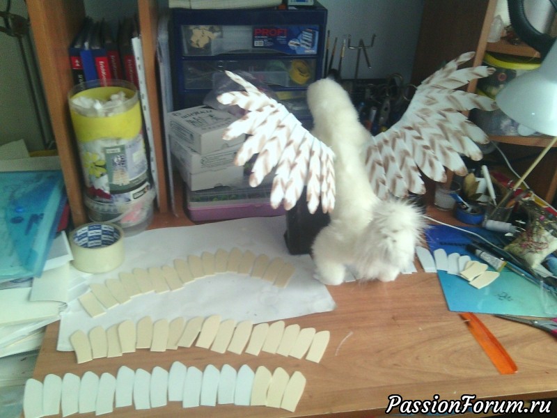 Целый день ушёл на изготовление перьев, на их тонировку и сборку в полноценные крылья